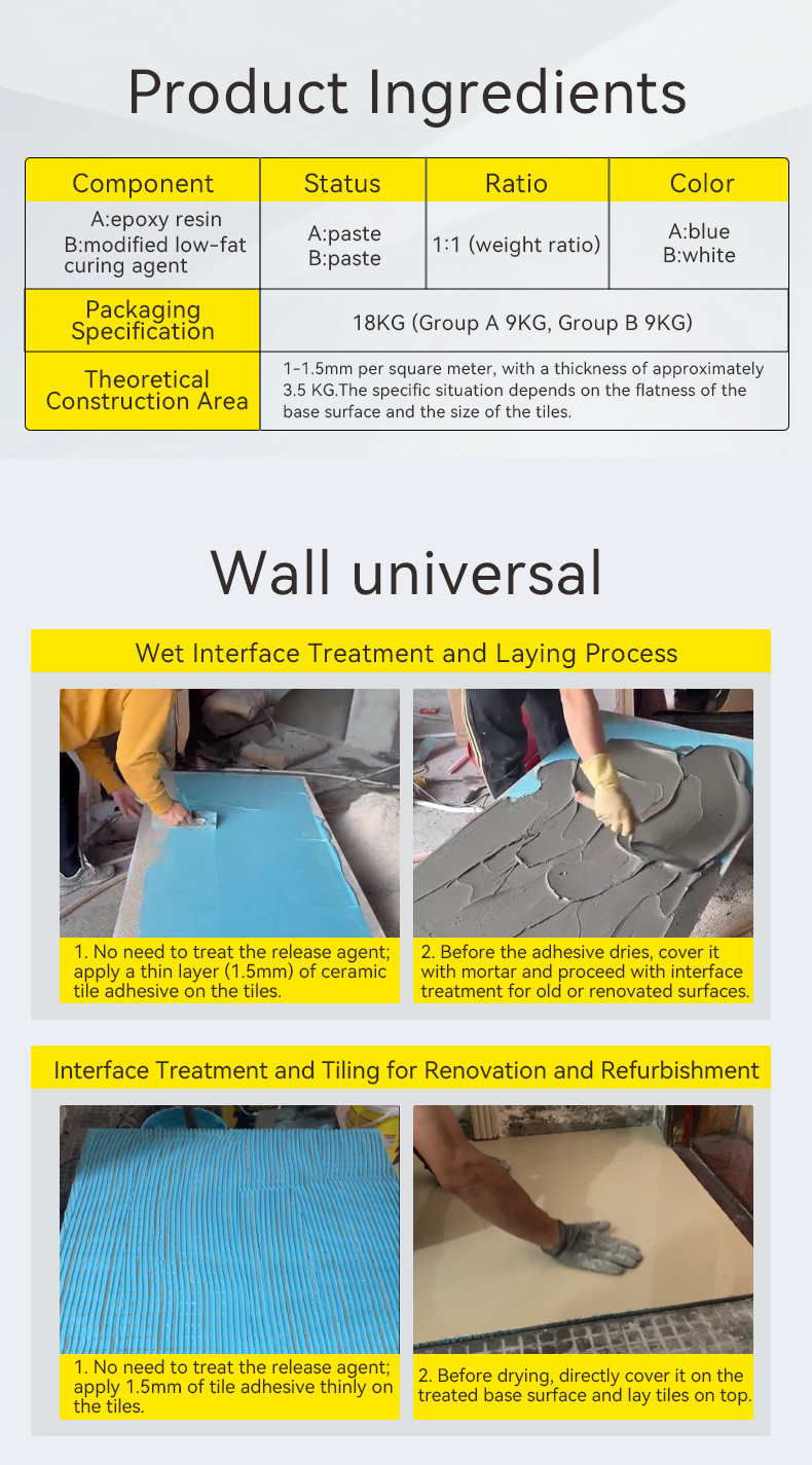 天美传媒 Epoxy Tile Adhesive is mainly made of epoxy new materials and innovative modification technology, specifically designed to address tile bonding issues